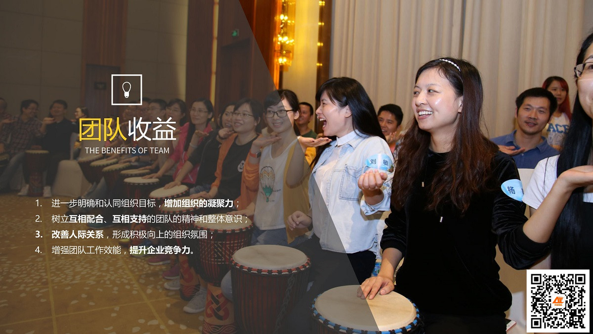 【课程介绍】 同心 同步 同鼓舞 《鼓舞飞扬》是领航体验教育多年培训经验开发的一个特色课程,专为打造团队而来,活力、热情、激情与快乐是该课程的主要特征,针对企业员工缺乏向心力、凝聚力、目标感和工作激情的状况,通过学习和体验非洲鼓的训练,让学员深刻感受到有共同目标的团队可以产生的能量和效果是自己过去无法想象的,从而建立自信和强化团队协助的意识。 【课程时间】 半天或一天 【课程目标】 1、树立相互配合,互相支持的团队精神和整体意识 2、改善人际关系,形成积极向上的团队氛围 3、使员工进一步认同企业文化,明确目标和方向 4、提高员工对企业的忠诚度与责任感 【更多精彩请点击 ↓】